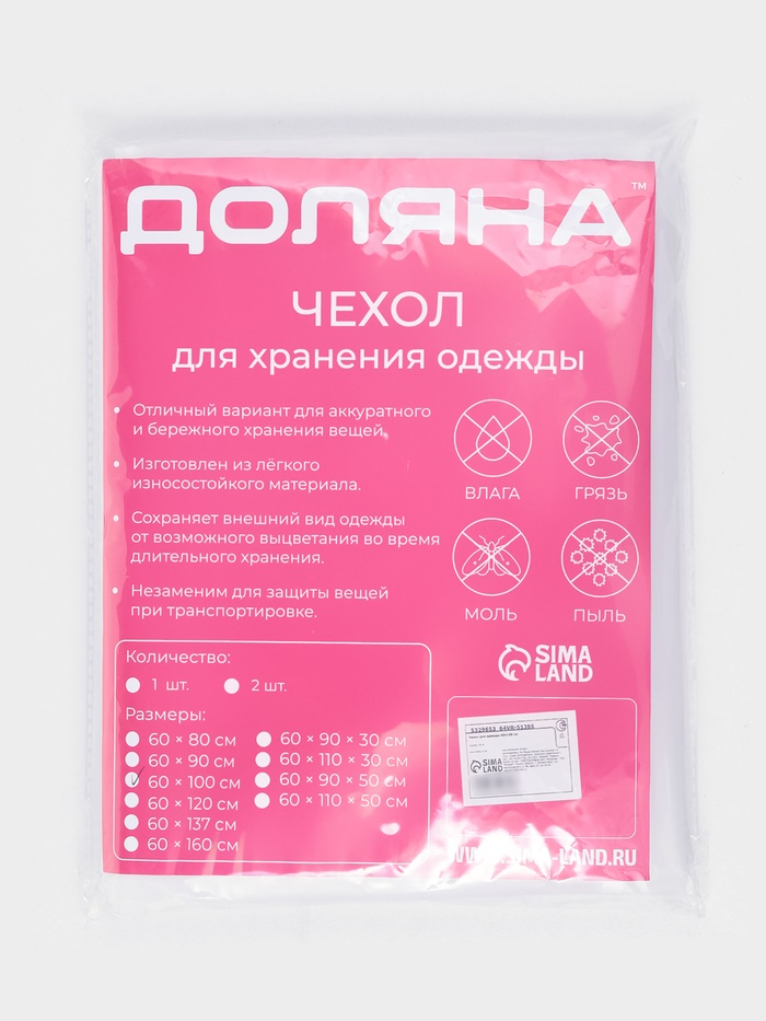- Чехол надёжно защищает одежду от пыли и грязи, от насекомых, механических повреждений или от возможного выцветания.