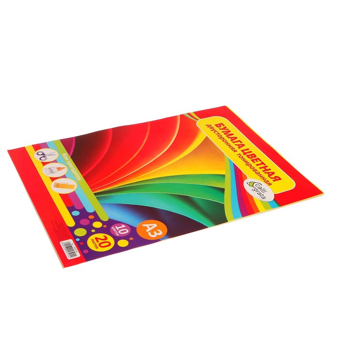 Бумага цветная двусторонняя А3, 20 листов, 10 цветов, тонированная
