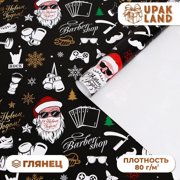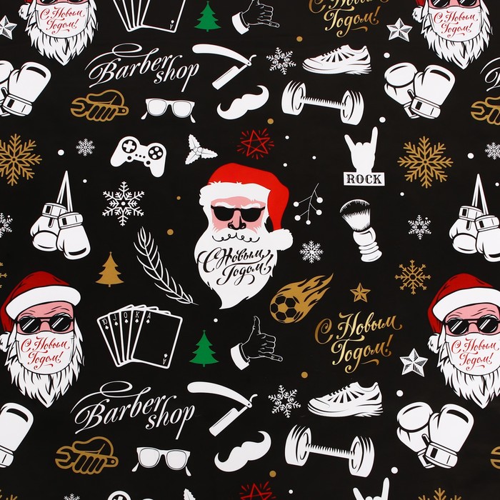 Бумага упаковочная глянцевая "Брутальный санта", 70 х 100 см, 1 лист