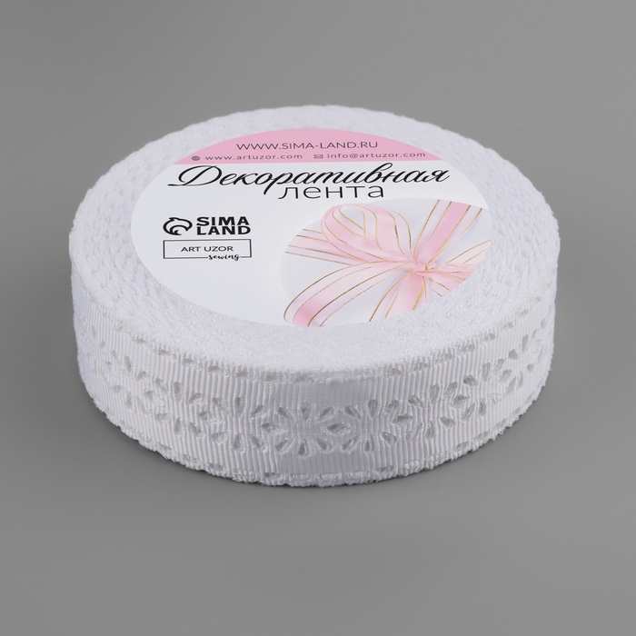 Лента декоративная, репсовая «Ажурные цветы», 25 мм × 9,1 ± 0,5 м, цвет белый