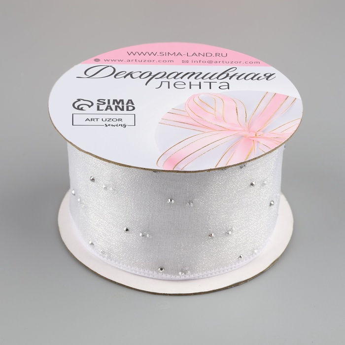 Лента капроновая, со стразами, 38 мм × 9,1 ± 0,5 м, цвет белый