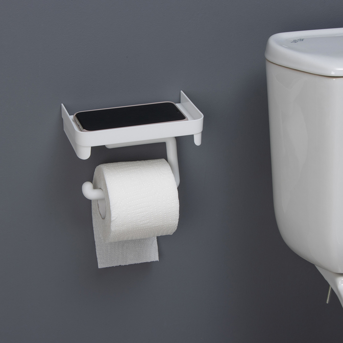 Держатель для туалетной бумаги с полочкой, цвет белый