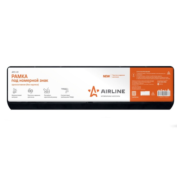 Рамка под номерной знак Airline, антивандальная, металл, хром