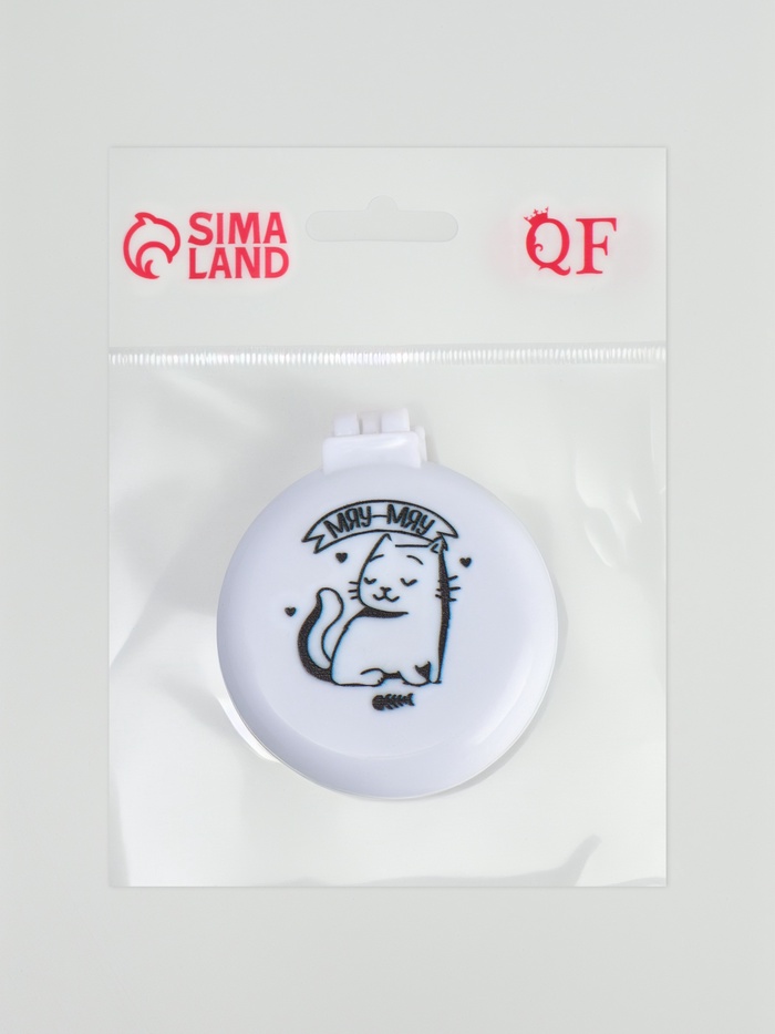 Расчёска массажная складная круг с зеркалом КОТЫ d6,5*2,5см бел пакет QF