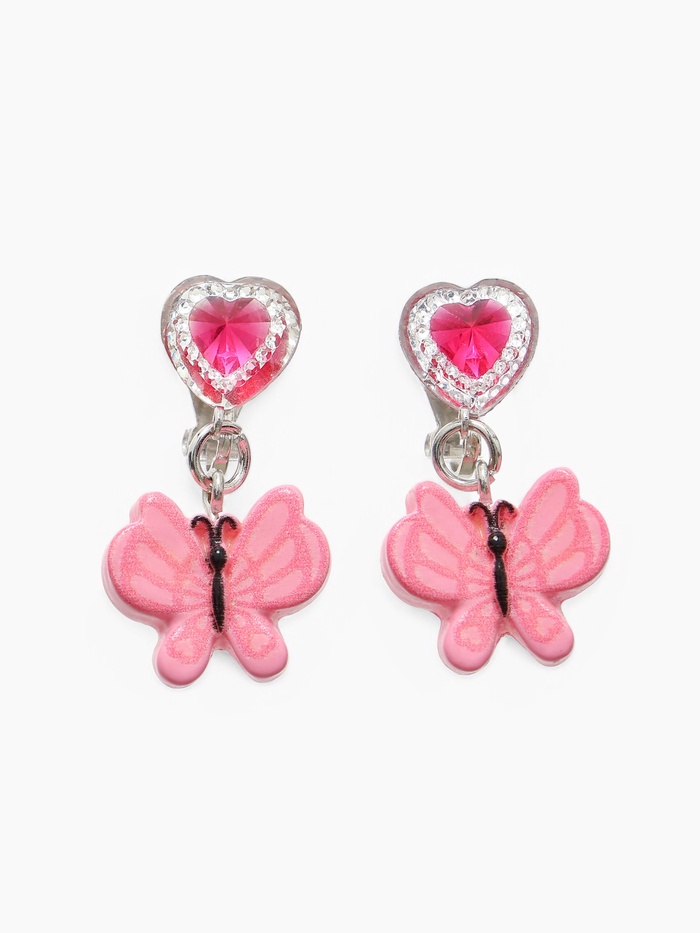 Серьги-клипсы детские "Выбражулька" бабочка драгоценность с сердцем кристалл, цвет розовый