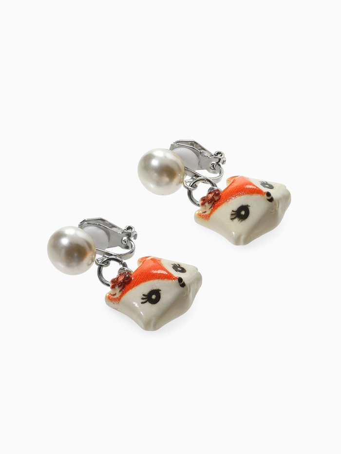Серьги-клипсы детские "Выбражулька" лиса с жемчужиной, цветные