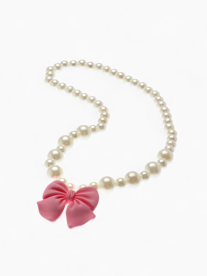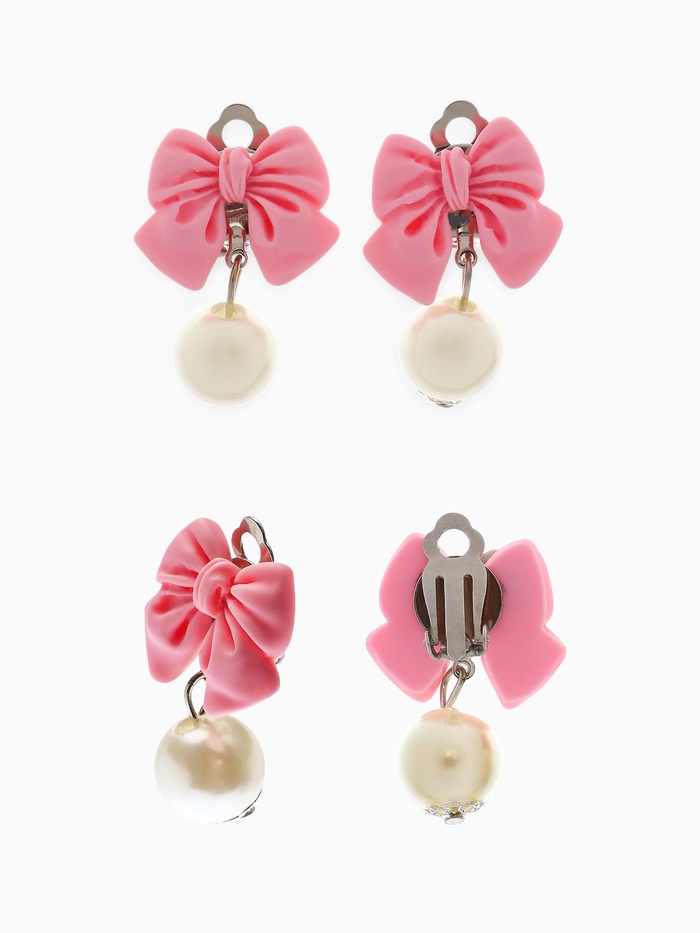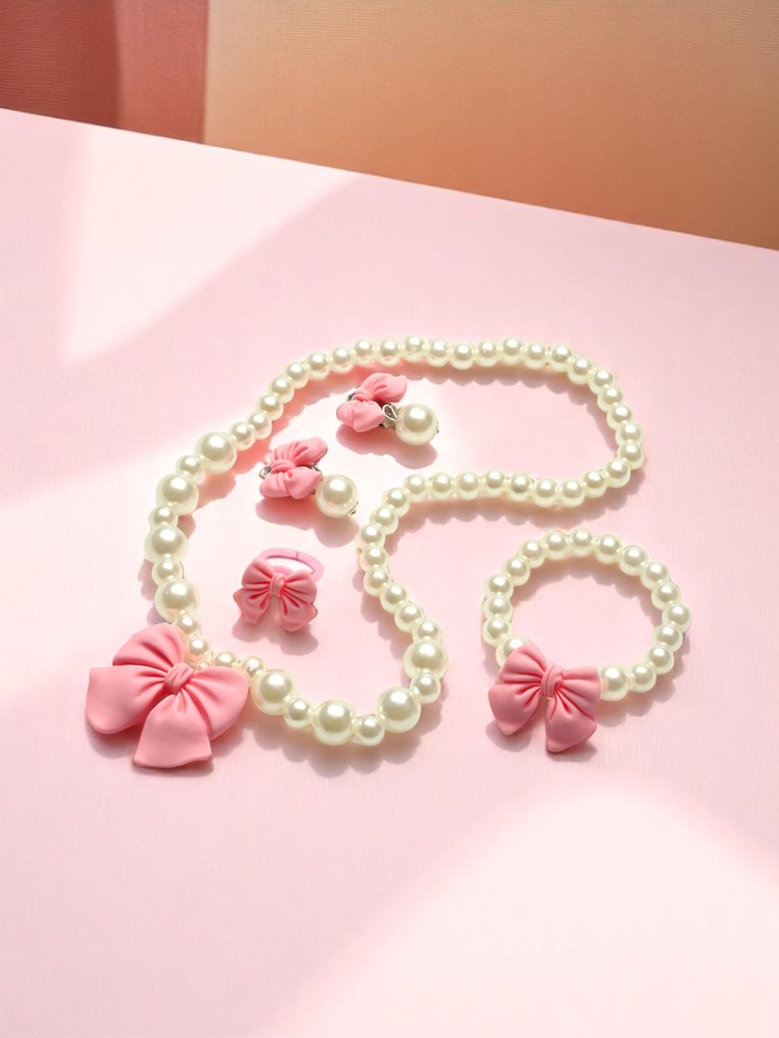 Набор детский Выбражулька «Бант», 4 предмета: кулон, браслет, кольцо, клипсы, бело-розовый