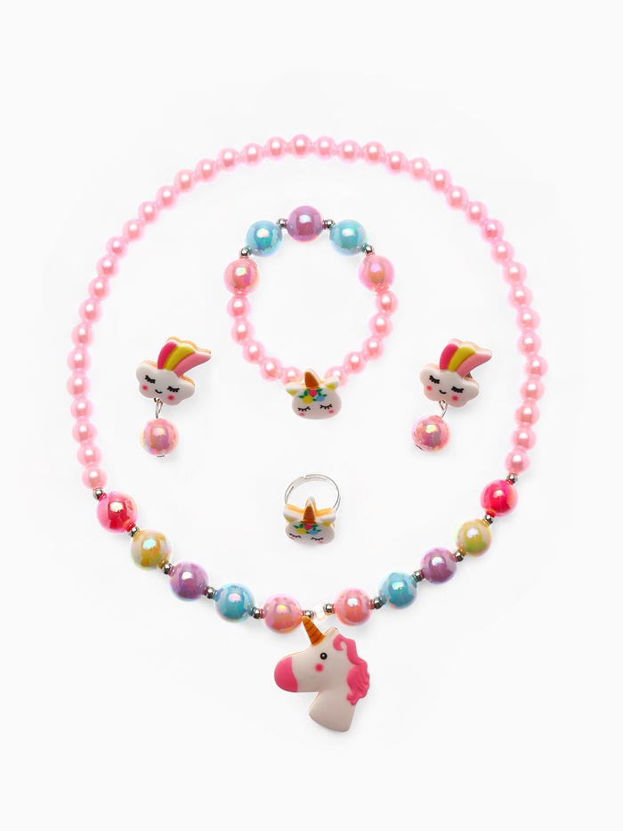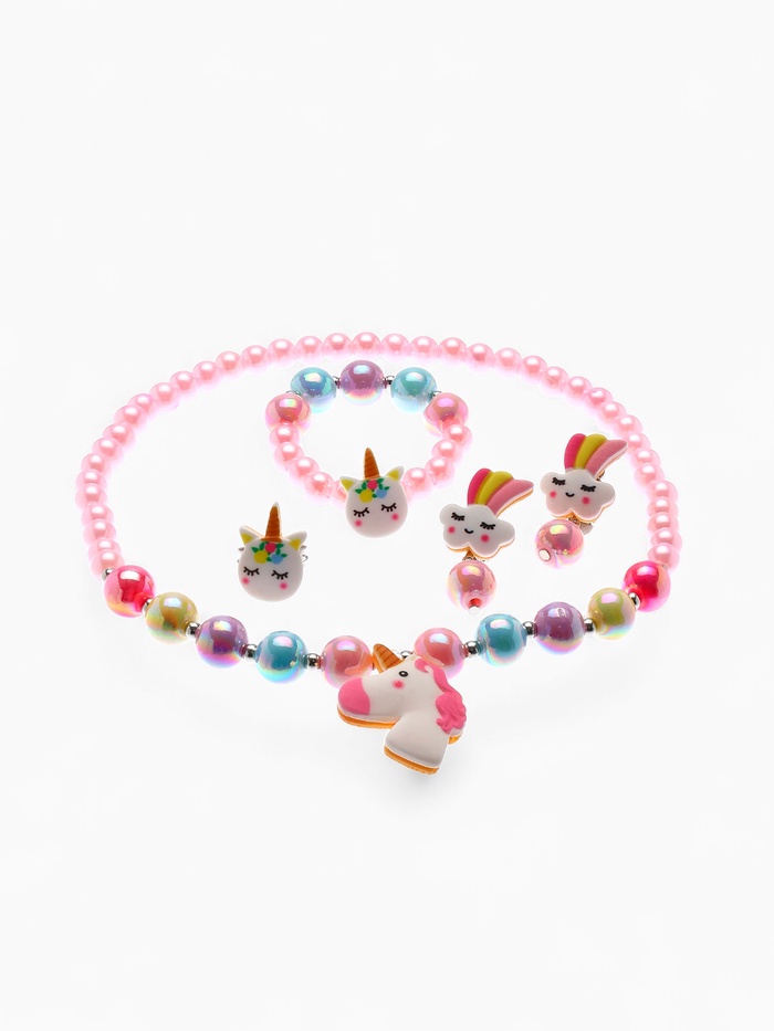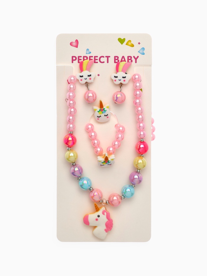 Набор детский Выбражулька «Единорог» 4 предмета: кулон, браслет, кольцо, клипсы цв. разноц