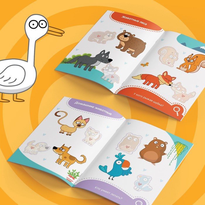 Изучайте животных и помогайте мамам найти своих малышей, решайте тематические задания с помощью специальных наклеек-половинок. Интерактивные игры с красочными картинками способствуют развитию цветового восприятия, визуального и логического мышления. Привлечение ребёнка в творческую деятельность с самого раннего возраста — это занимательно и просто!