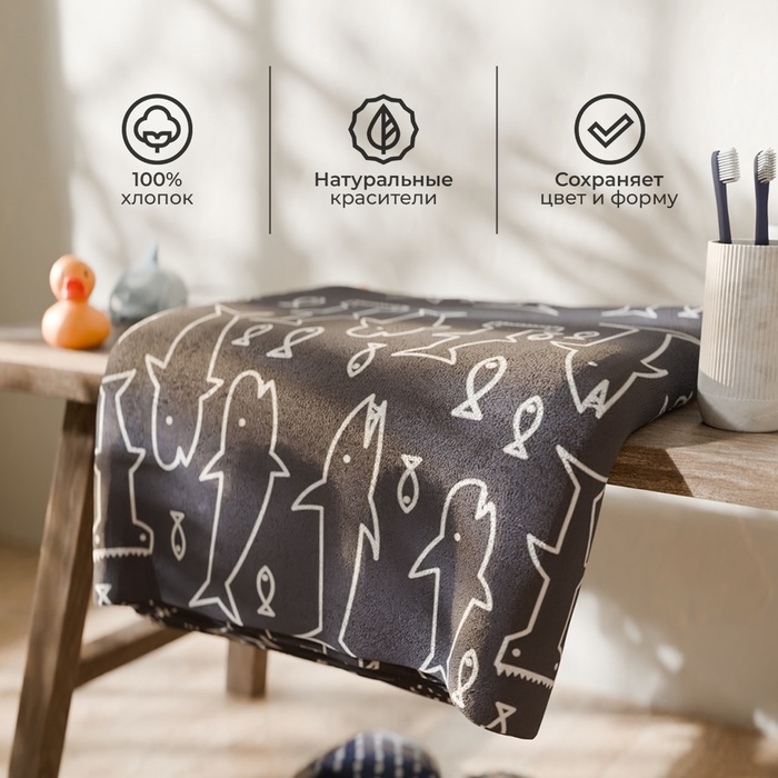 Полотенце махровое "Этель" Акулы, 70х130 см, 100% хлопок, 420гр/м2