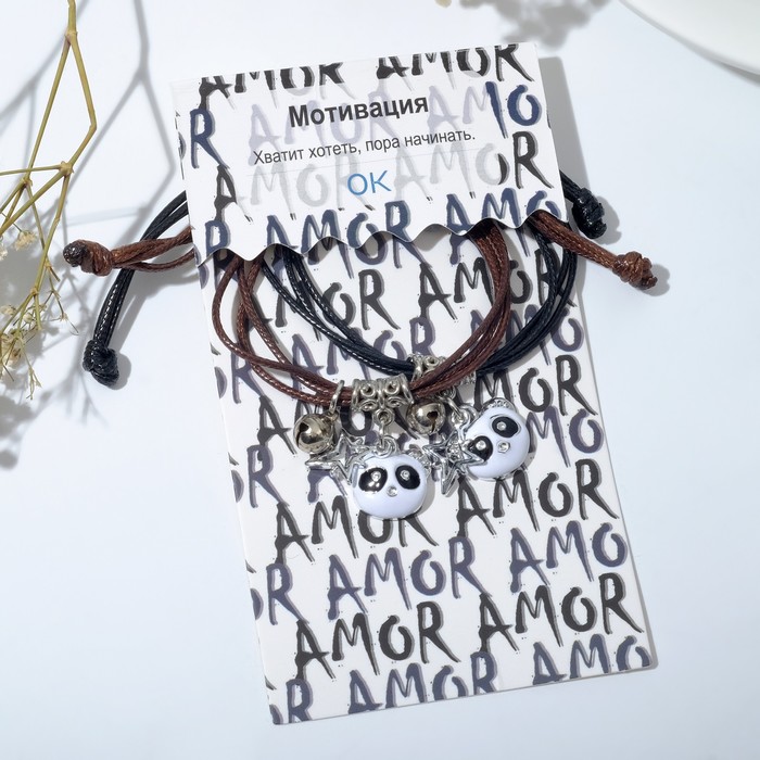 Браслеты "Неразлучники" панды, цвет чёрно-коричневый, L=12,5 см