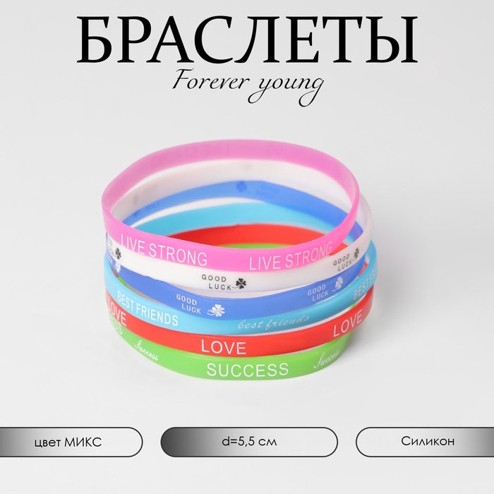 Силиконовый браслет «Молодость всё простит» стандарт, цвет чёрный, 20 см
