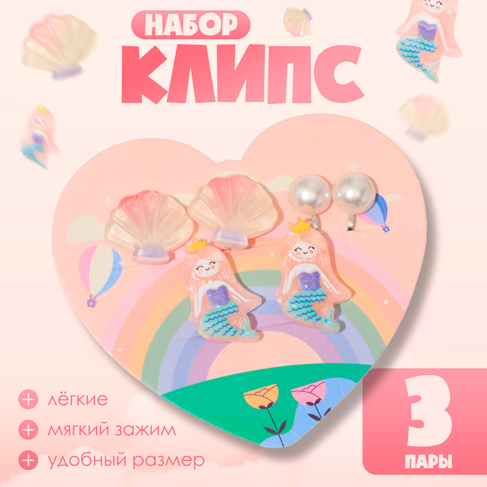 Набор клипс детских (3 пары) "Выбражулька" морская коллекция, цветной