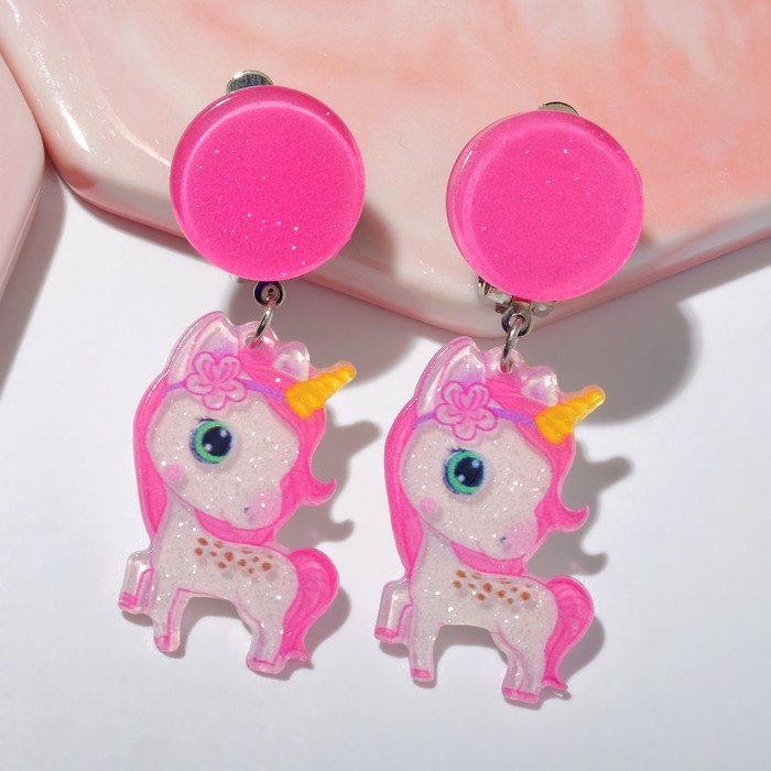 Клипсы "Выбражулька" сказка, единорожка с цветочком, цвет розовый