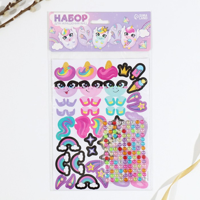 С помощью данного набора вы сможете украсить яйца к светлому празднику Пасхи. В комплект входит 46 виниловых наклеек и 126 страз.