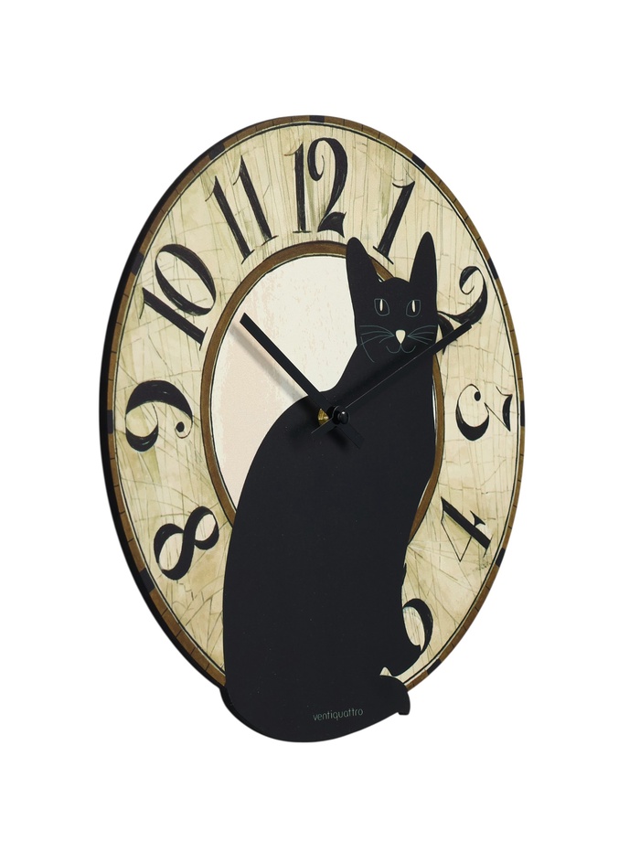 Эти оригинальные настенные часы с изображением чёрного кота добавят игривой нотки в ваш интерьер. Кварцевый механизм с плавным ходом стрелок сочетает точность с необычным дизайном для любителей животных.
