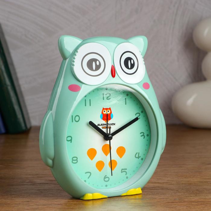 Будильник "Совушка", дискретный ход, 14.5 х 4 х 16 см, циферблат 11 см, зеленый