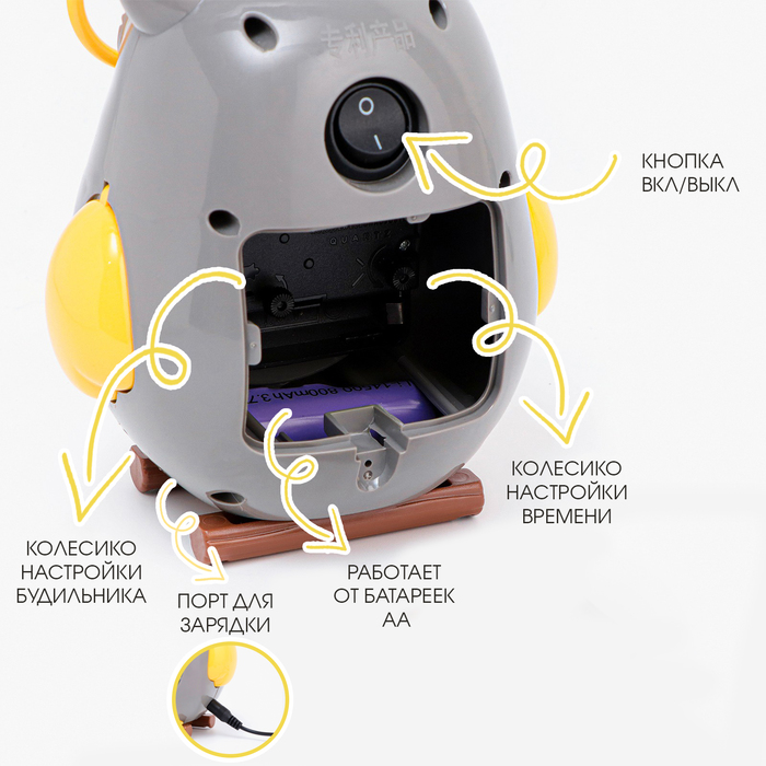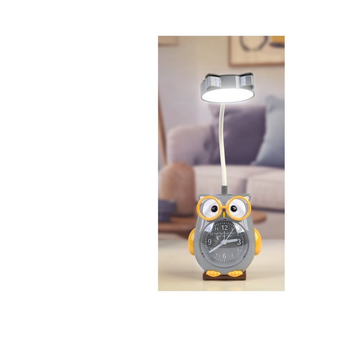 Часы-светильник "Совушка", с будильником, зеркало, расческа, 800 мАч, дискретный ход, АА,USB