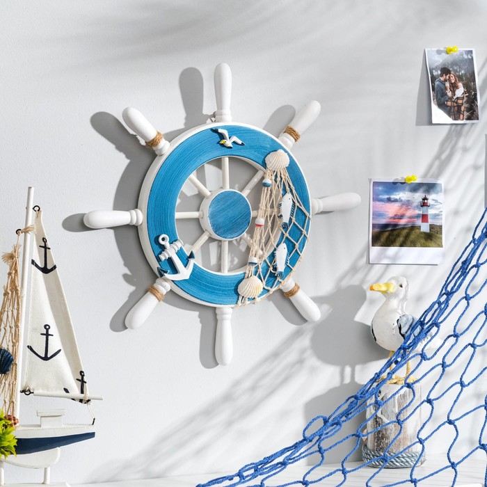 Декор интерьерный «Штурвал» на стену, бело-синий, 45 х 45 х 3 см