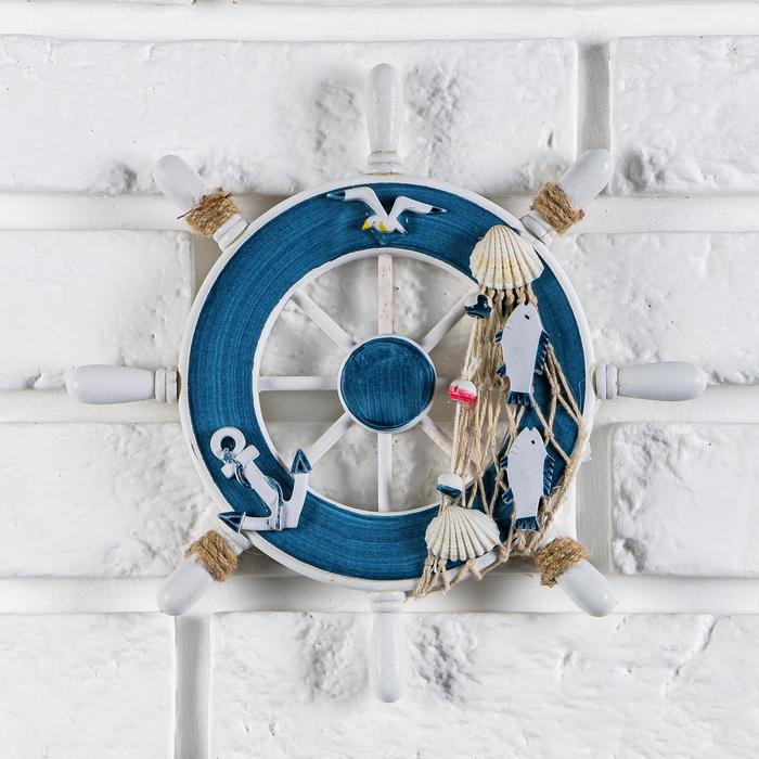 Декор интерьерный «Штурвал» на стену, бело-синий, 23 х 23 х 1,5 см