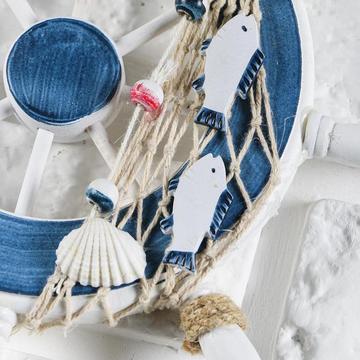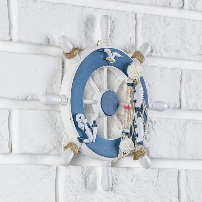 Декор интерьерный «Штурвал» на стену, бело-синий, 23 х 23 х 1,5 см