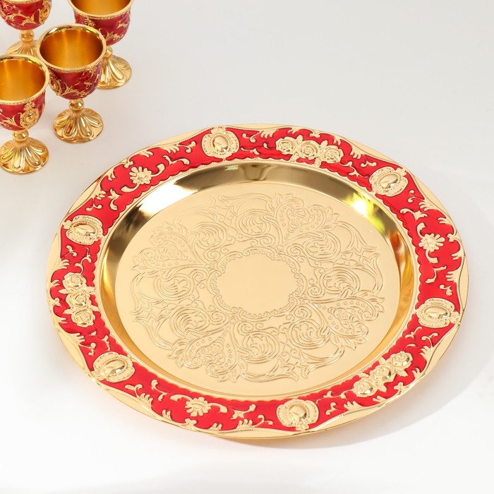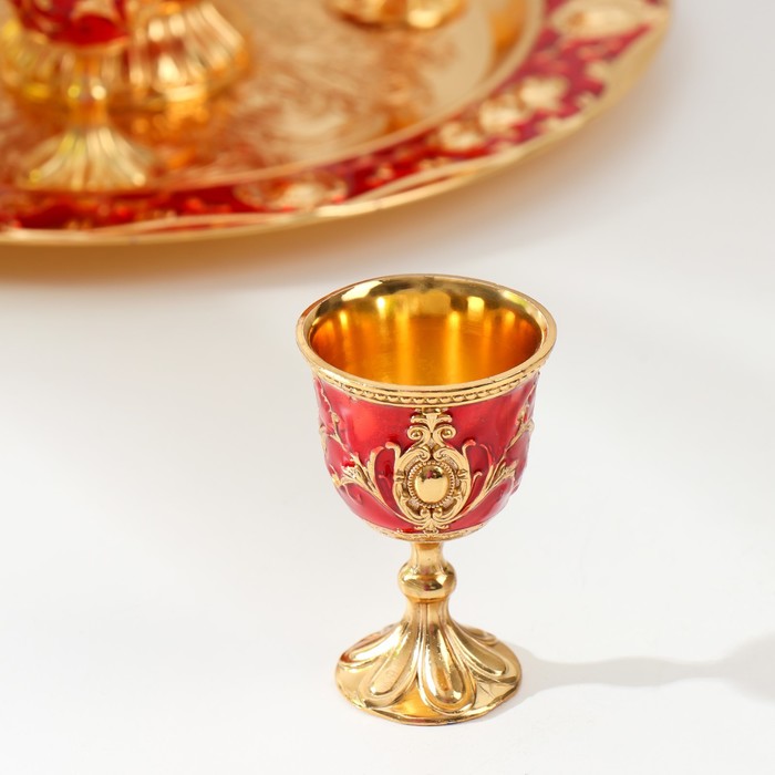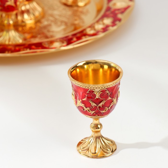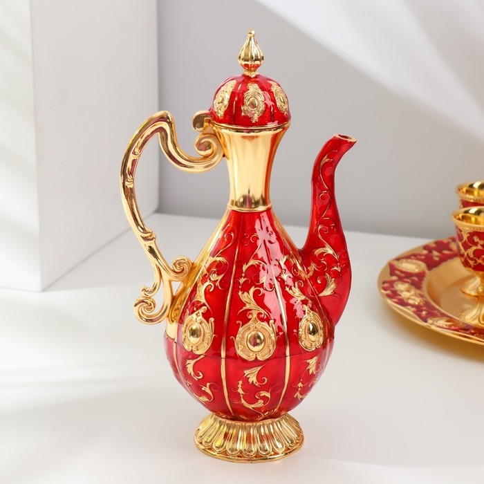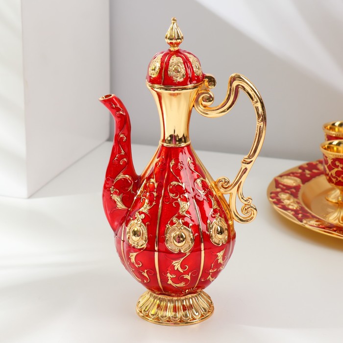 Набор винный кувшин, 6 бокалов и поднос "Турция. Медальон и узоры" красный с золотом