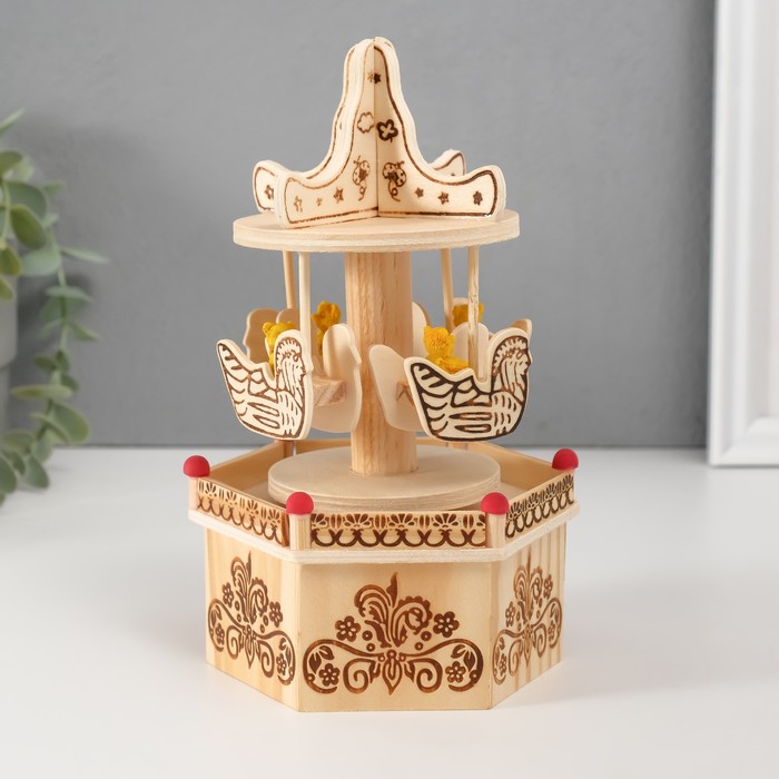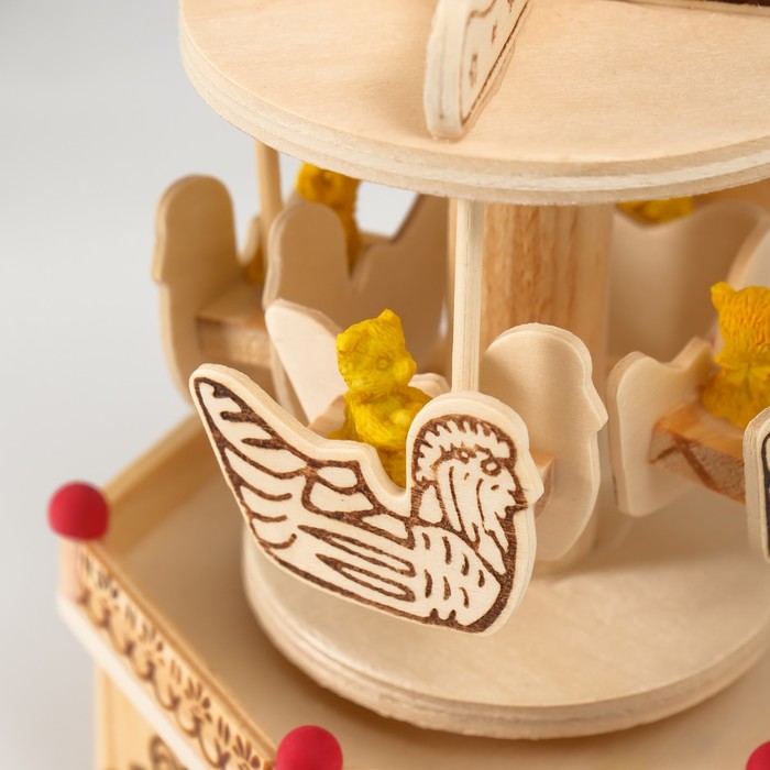 Сувенир дерево музыкальный механический "Карусель - мишка в лодочке" 10х11,5х18,5 см