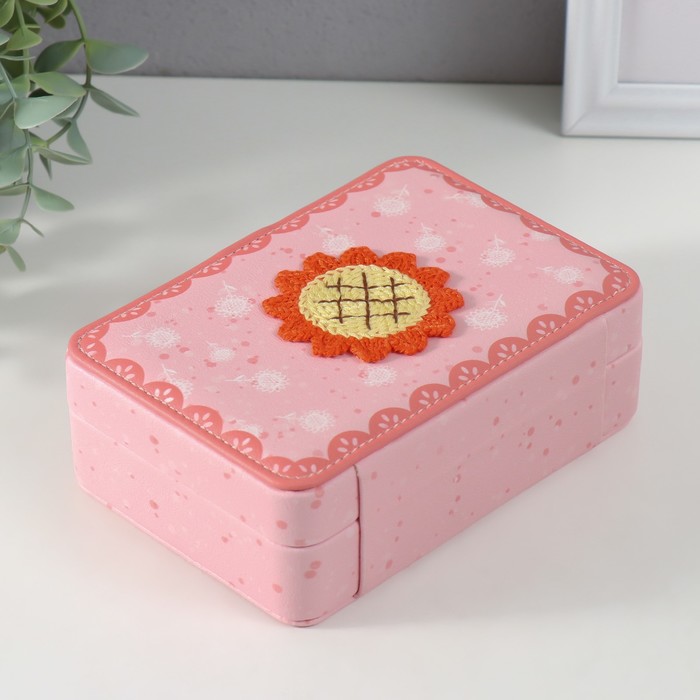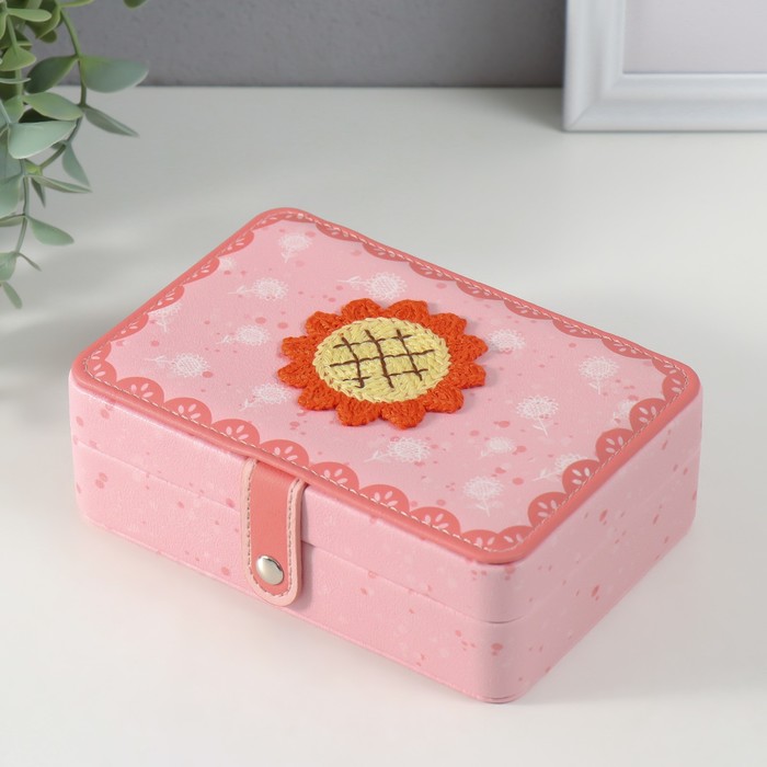 Шкатулка кожзам для украшений "Оранжевый подсолнух на розовом" 11х16х5,5 см