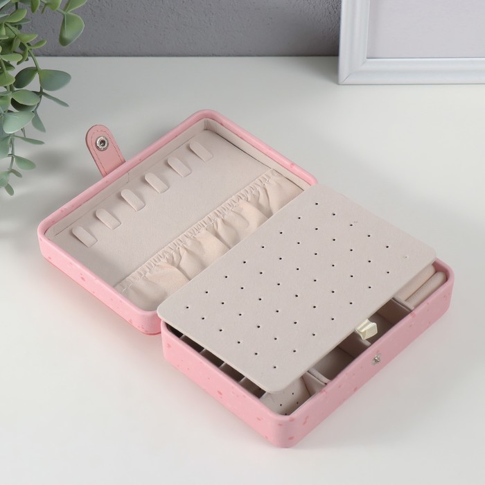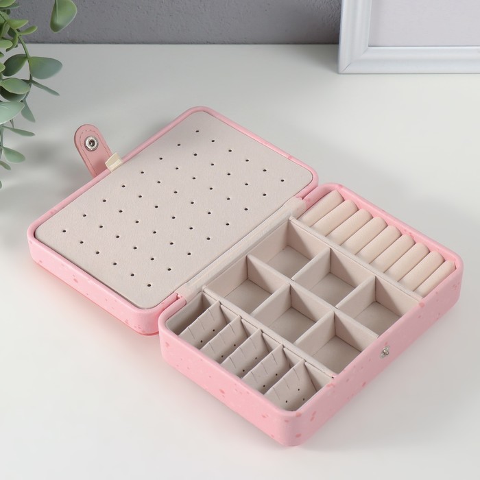 Шкатулка кожзам для украшений "Кактусы" нежно-розовая 5х15х10 см