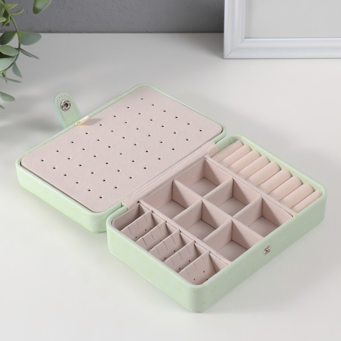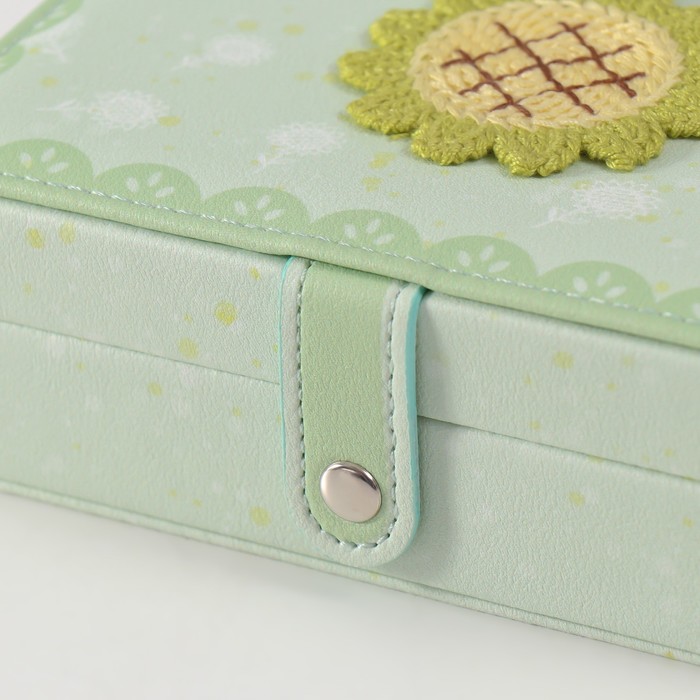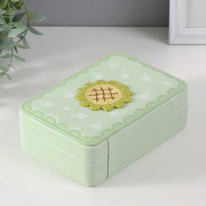 Шкатулка кожзам для украшений "Зелёный подсолнух" 11х16х5,5 см