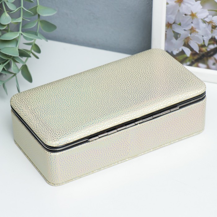 Шкатулка кожзам для украшений "Маленькие пятнышки. Золото голография" 6х9,8х18,5 см