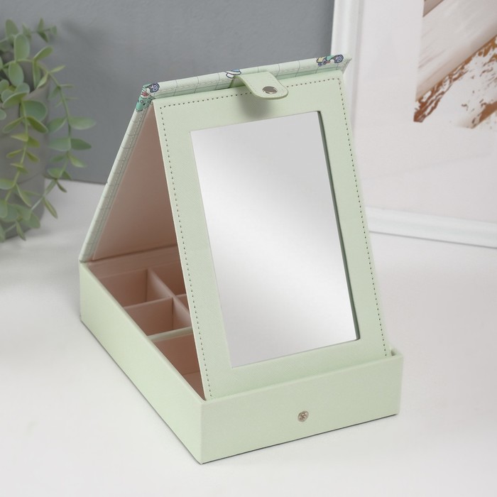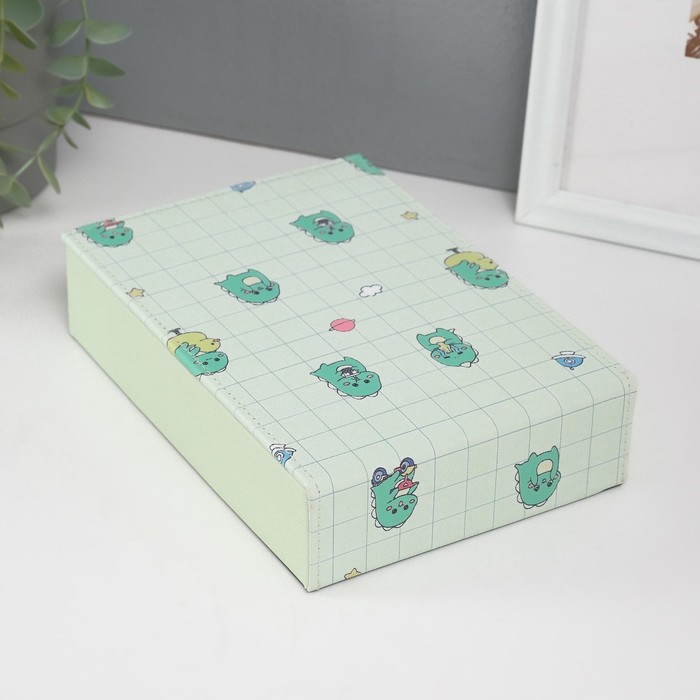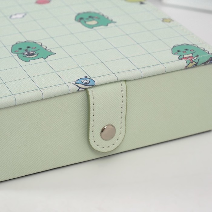 Шкатулка кожзам для украшений с зеркалом "Динозаврики" зелёная 15х21,5х5,5 см