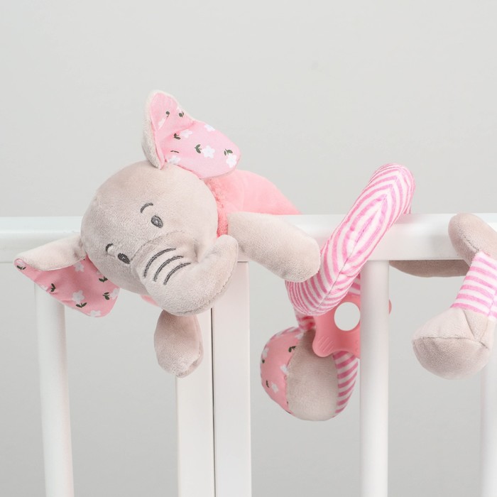 Растяжка - спираль мягкая с погремушкой на кроватку/коляску «Слоник розовый», Крошка Я