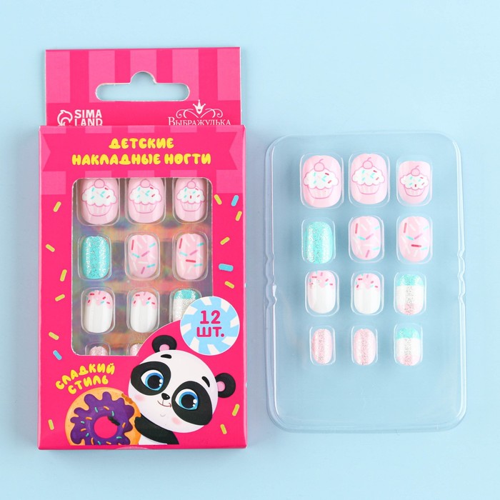 Детские накладные ногти «Сладкий стиль», 12 шт
