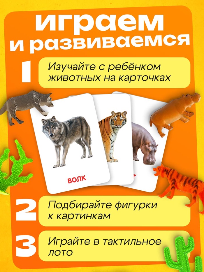 Развивающий набор фигурок для детей «Дикие животные» с карточками, по методике Домана