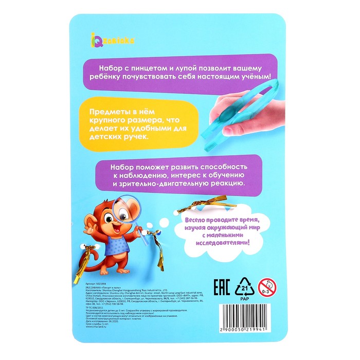 Набор для обучения «Пинцет и лупа», МИКС, по методике Монтессори
