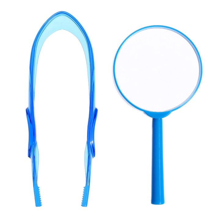 Размер лупы: 12,5 × 6,5 × 1,4 см; пинцета: 14 × 5 × 2 см.