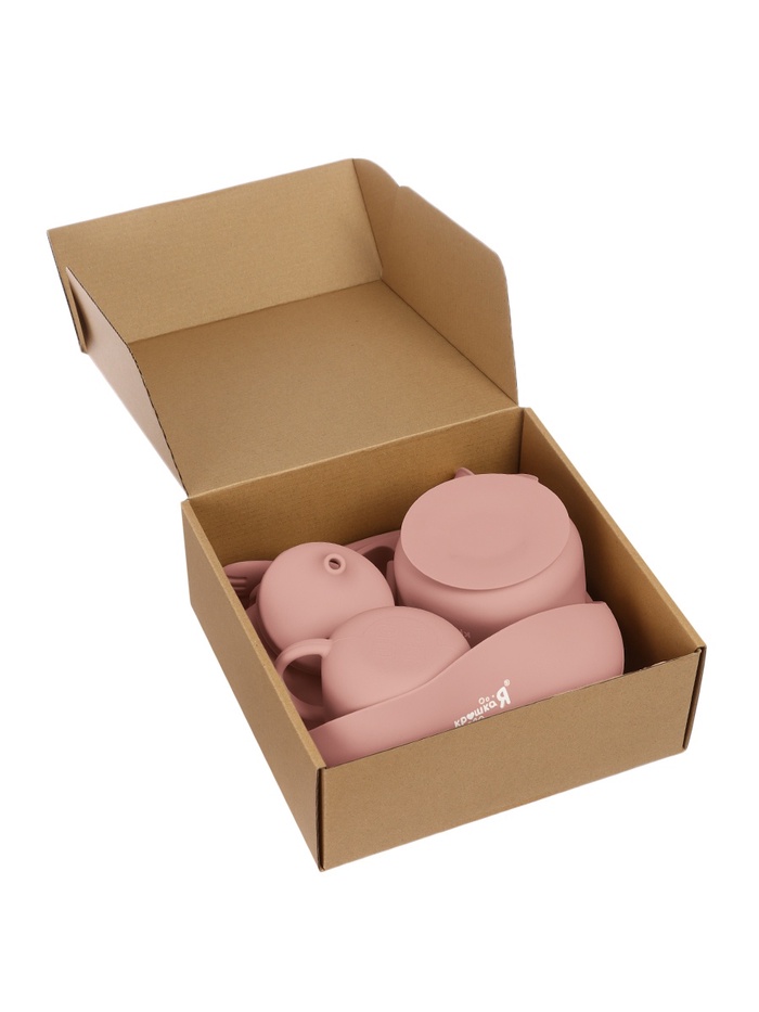 Набор для кормления: нагрудник, тарелка на присоске, ложка, Крошка Я, розовый