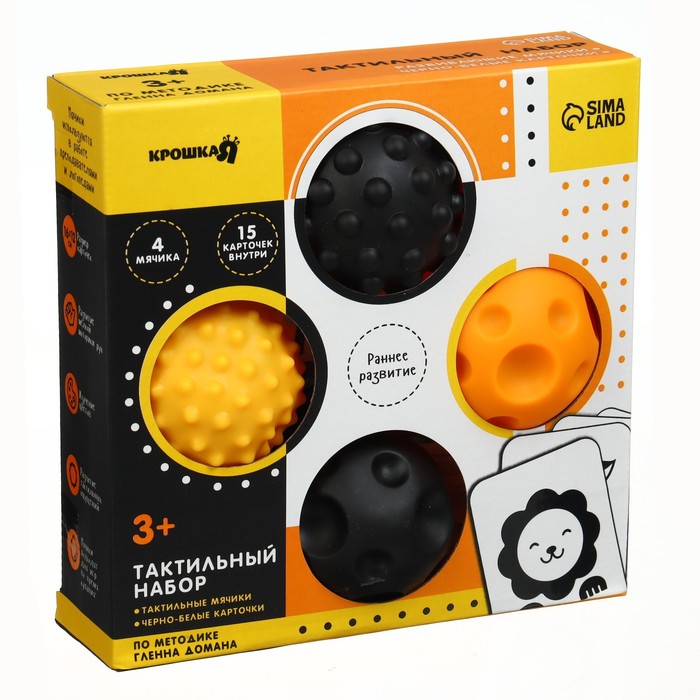 Набор развивающих тактильных мячиков по методике Гленна Домана, с пищалкой, 4 шт, Крошка Я
