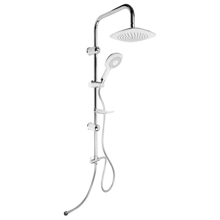 Душевая система ZEIN Z1001, тропическая и ручная лейка, шланги, стойка, мыльница, хром