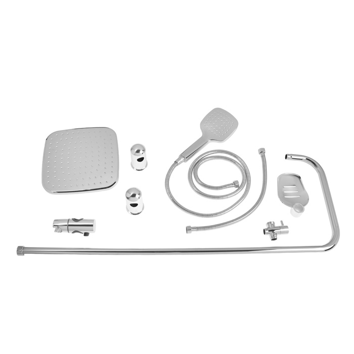 Душевая система ZEIN Z1001, тропическая и ручная лейка, шланги, стойка, мыльница, хром