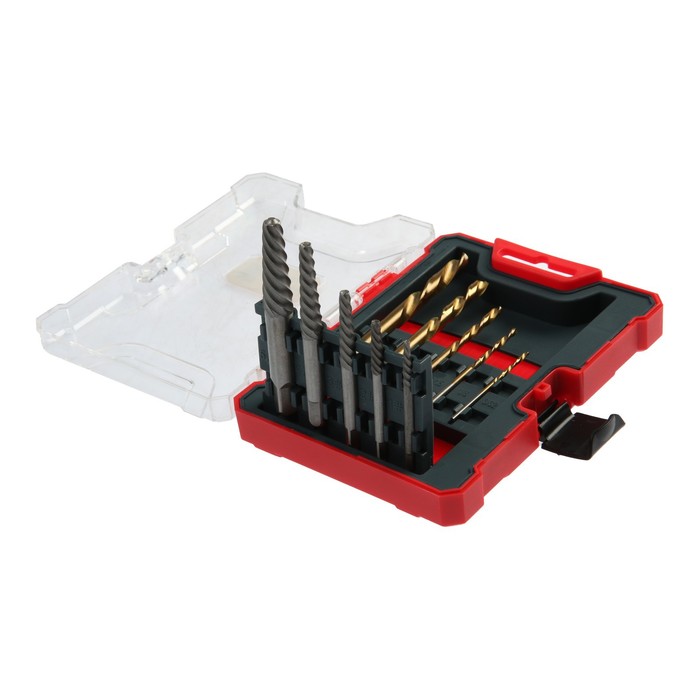 Набор экстракторов и сверл ТУНДРА, крупная левая резьба, 45 сталь М1-М5, d=2.4-8 мм HSS, TIN