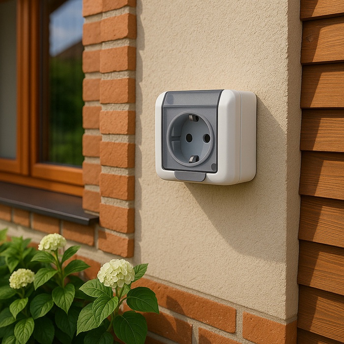 Розетка одноместная, 16 А, накладная, с з/к, IP 44, уличная, белая