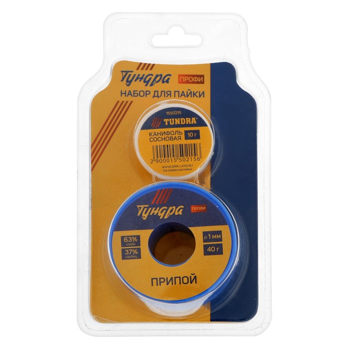 Набор для пайки ТУНДРА ВДОМ, припой ПОС 63 (1 мм, 40 г), канифоль (10 г)