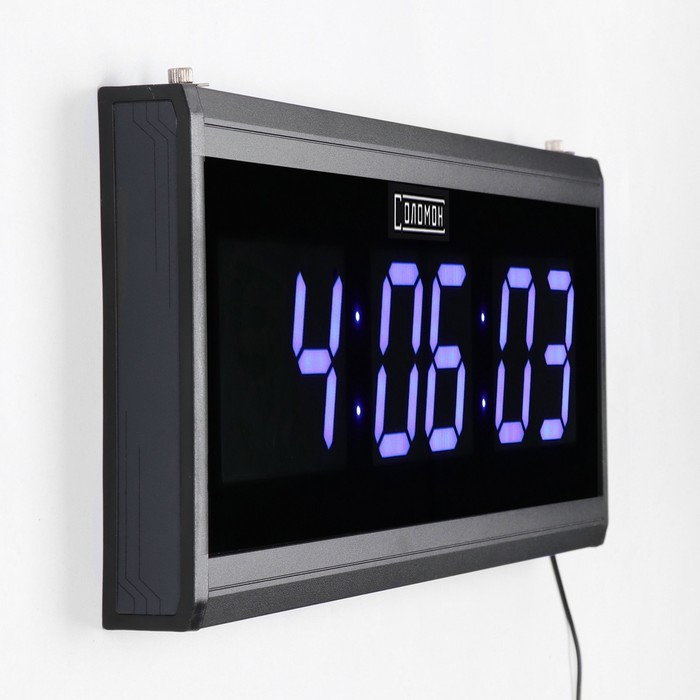 Часы электронные настенные, 19 х 3 х 48 см, синие цифры