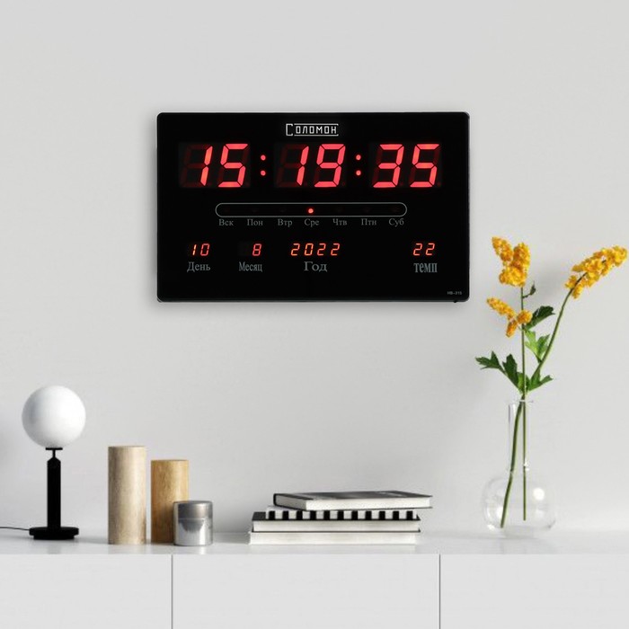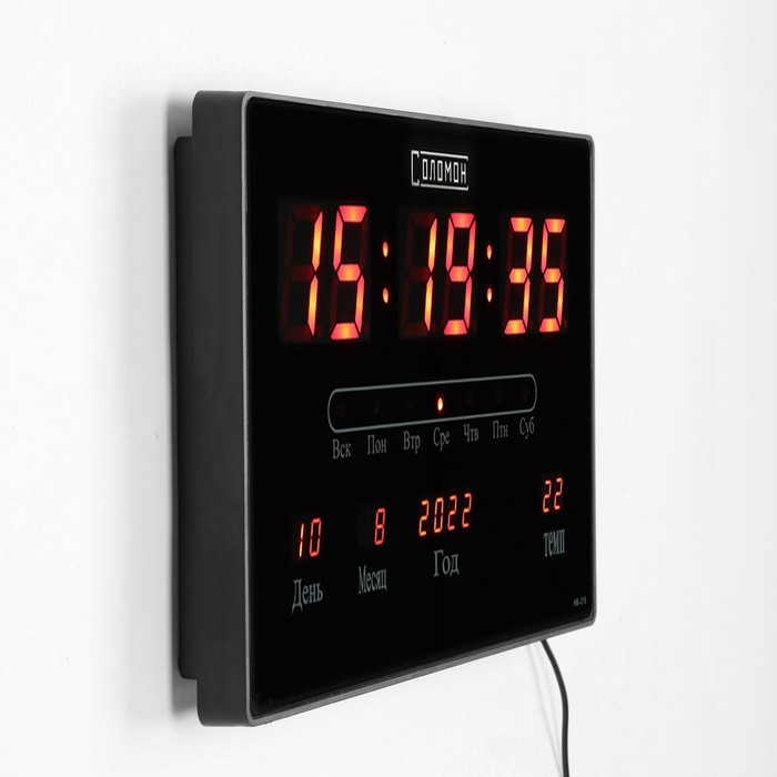 Часы электронные настенные, настольные "Соломон", будильник, 15.5 х 23.5 см, красные цифры