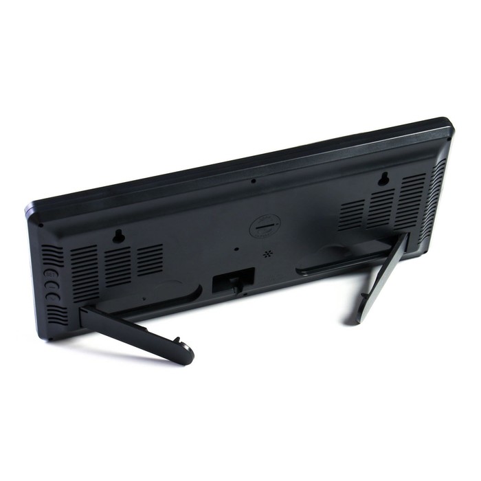 Часы электронные настенные, настольные, с будильником, 36 х 15 х 3 см, белые цифры
