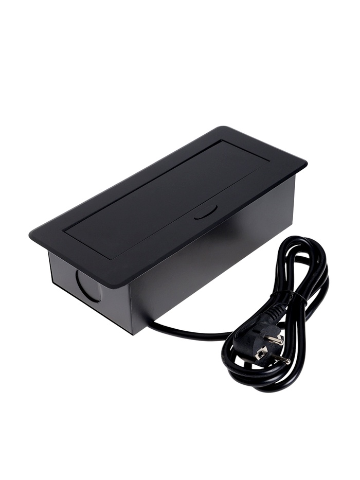 Блок розеточный в стол, сдвижная крышка, 10А, 3 розетки, провод 1.8 м, серебристый