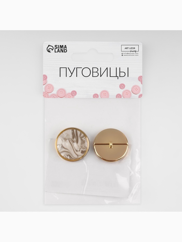 Набор металлических пуговиц на ножке, d = 25 мм, 2 шт, цвет золотой/серый агат