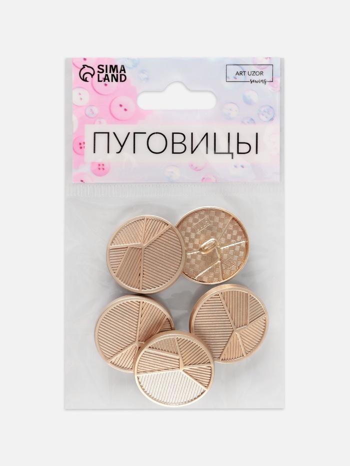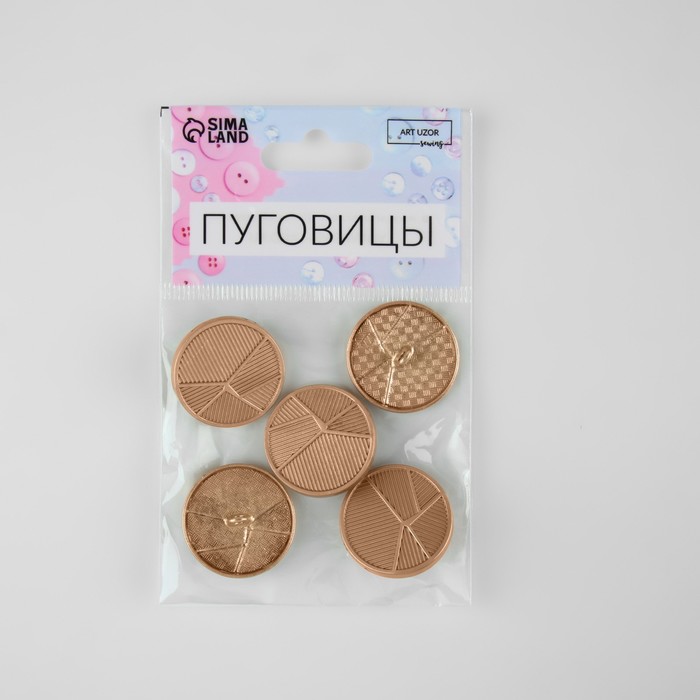 Набор металлических пуговиц на ножке «Геометрия», d = 25 мм, 5 шт, цвет золотой